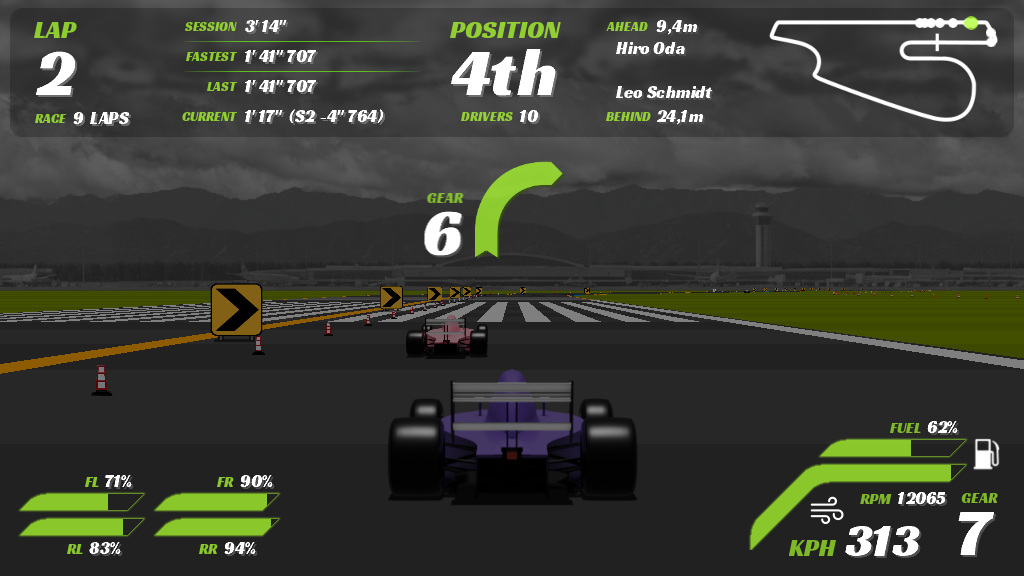 - Track assistant suggesting cornering optimal gear