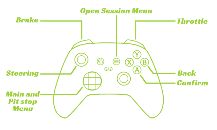 GPX can be played with keyboard (arrow keys by default) or with any supported USB controller. Input controls are not configurable. The following is the predefined gamepad scheme for controlling menus and driving: